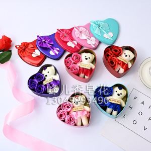 小熊香皂花礼盒外贸跨境情人节礼物小熊玫瑰花心形铁盒厂家