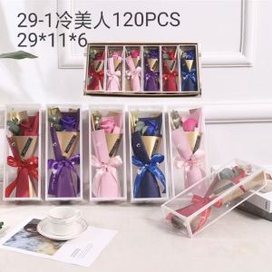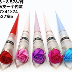 新款单支玫瑰香皂花彩条盒包装花母亲节教师节礼物批发