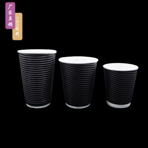 8安一次性双层中空黑色咖啡杯瓦楞杯 冷热通用纸杯 支持Logo 印刷
