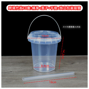 跨境一次性水果桶PP手提10套1000ML加吸管套装透明圆形奶茶桶