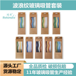 创意水波形波浪纹玻璃吸管套装现货波浪形吸管彩色大波浪玻璃吸管