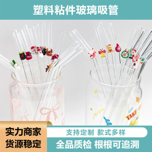 圣诞节玻璃吸管塑料粘件创意造型吸管套装亚马逊电商热卖吸管套装