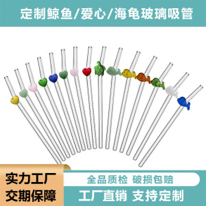 玻璃吸管乌龟鲸鱼粘件爱心高硼硅套装现货批发环保环保玻璃吸管