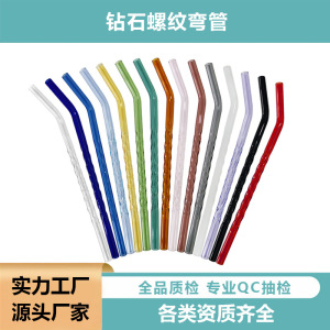 钻石螺纹玻璃吸管新款创意高硼硅异形吸管工厂现货批发跨境热卖