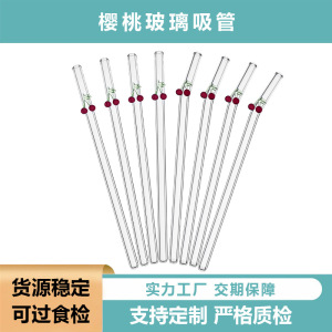 樱桃玻璃吸管环保耐热可循环水果吸管透明直弯吸管套装跨境热卖