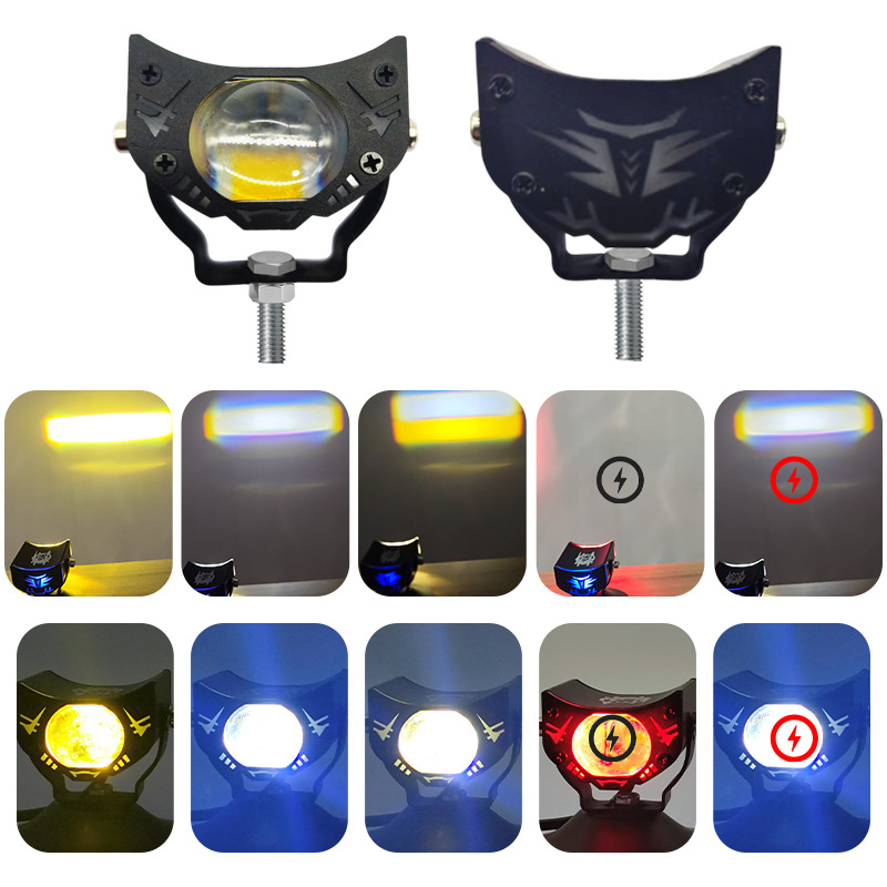 恶魔眼LED射灯摩托车电动越野车激光炮透镜远近光一体 改装小钢炮