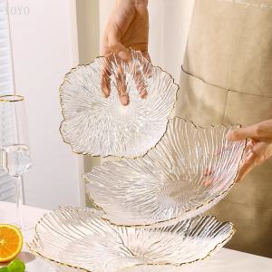 轻奢玻璃果盘家用客厅茶几水果盘高颜值零食盘糖果盘花瓣水果盘子