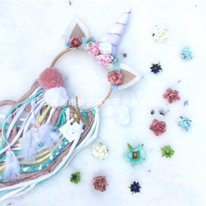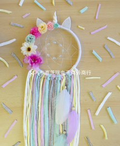 工厂直销INS北欧风花环羽毛独角兽捕梦网空中挂饰风铃创意手工