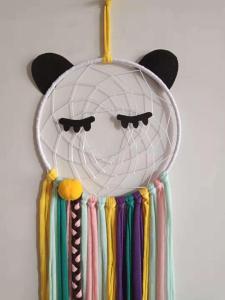 工厂直销INS风可爱熊猫带睫毛捕梦网风铃毛球羽毛儿童房装饰挂件