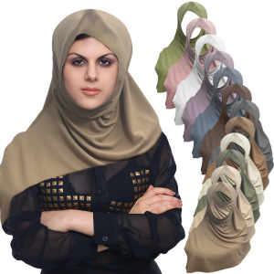 外贸热卖珍珠雪纺围巾穆斯林沙特阿拉伯中东大围巾 纯色头巾批发