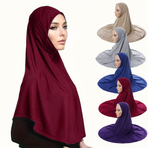 水晶麻纯色马来女士高弹性大套头帽 中东阿拉伯侧开叉头巾包头帽