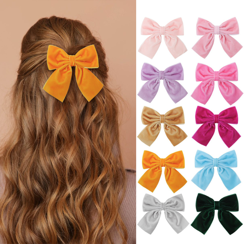 欧美新款儿童发饰丝绒手工蝴蝶结发夹宝宝可爱公主一字夹头饰