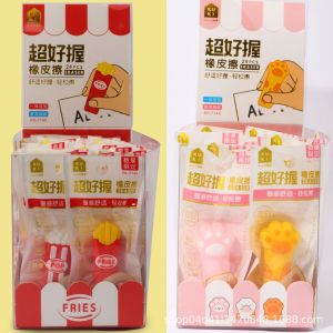 新款创意薯条造型橡皮擦可爱猫爪学生文具擦得干净不留痕胶擦字胶