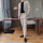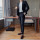 西服套装秋冬季男士纯色西装两件套韩版修身刺绣西服套装