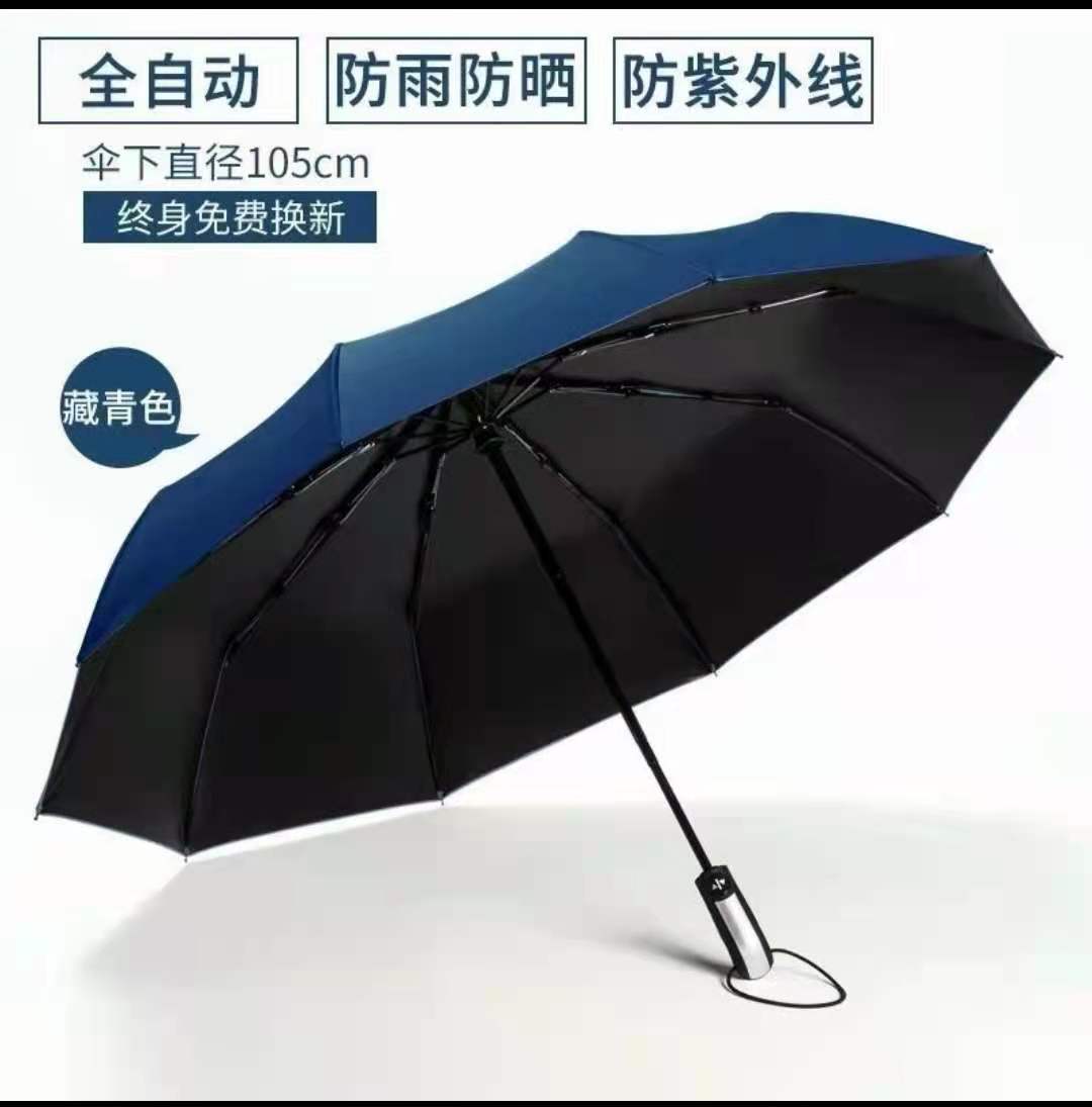全自动商务防晒防紫外线折叠黑胶晴雨伞男女两用三折遮阳伞雨伞