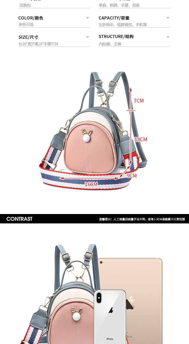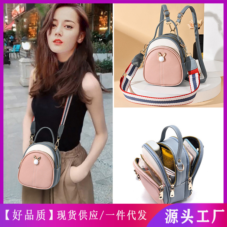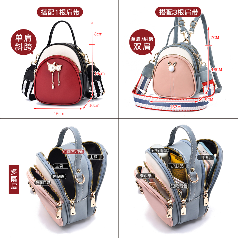 双色拼色包多口袋可单肩可双肩可手提斜挎包包地摊11814