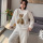 新款女士睡衣秋冬季圆领卡通小熊套头两件套加厚加绒羊羔绒家居服