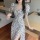 海边度假长裙2022夏新款不规则开叉V领遮肚子显瘦波点纯欲连衣裙