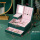 皮革绣菱形格+珍珠绒-复古樱花粉