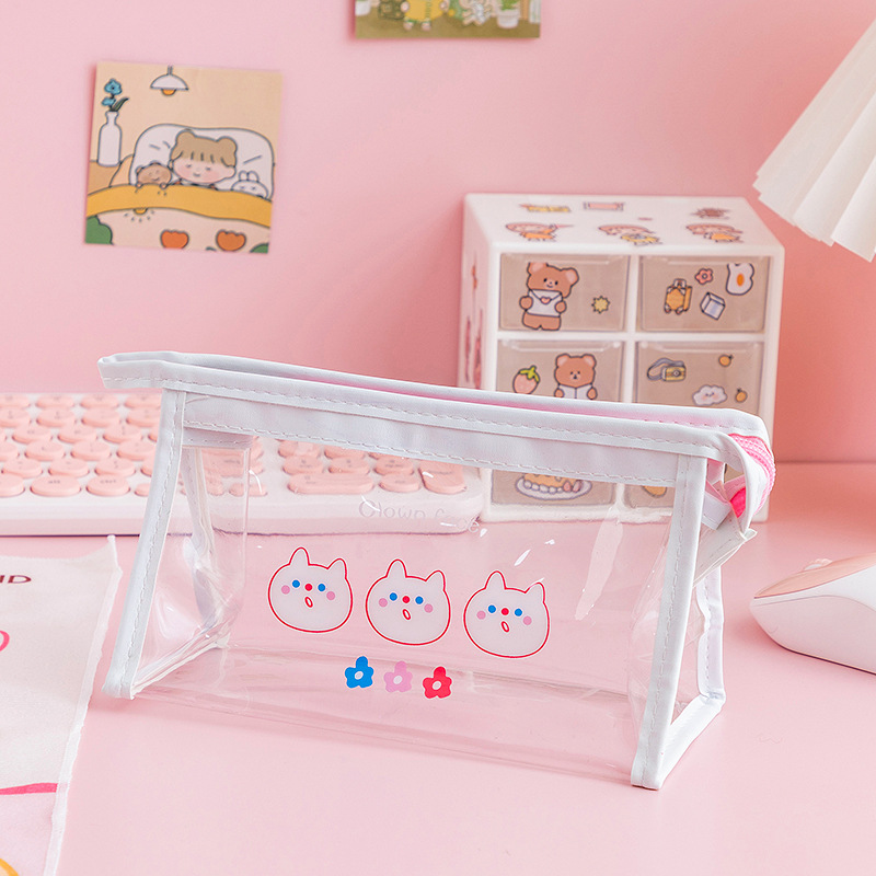 韩版简约动漫卡通可爱搞怪笔袋收纳包方形透明手提化妆包批发