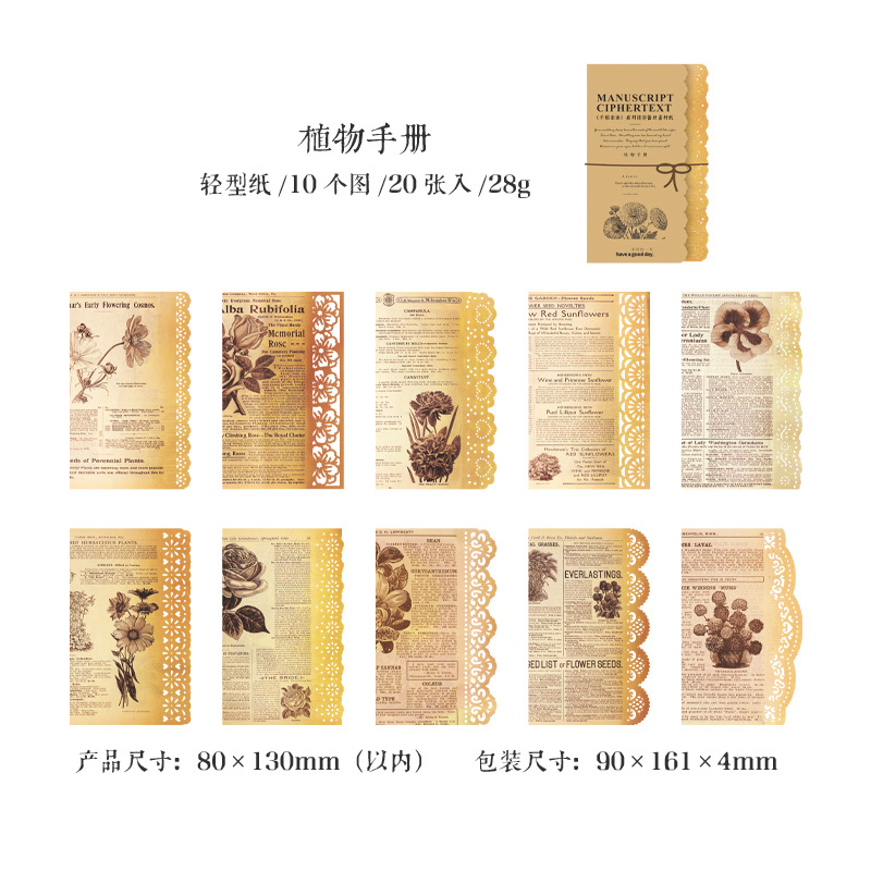 素材纸 手稿密语系列 复古文艺蕾丝边手帐打底拼贴 6款