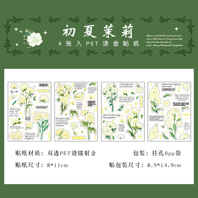 pet烫金贴纸 印象花园系列 复古植物花卉diy手账贴画素材 6款