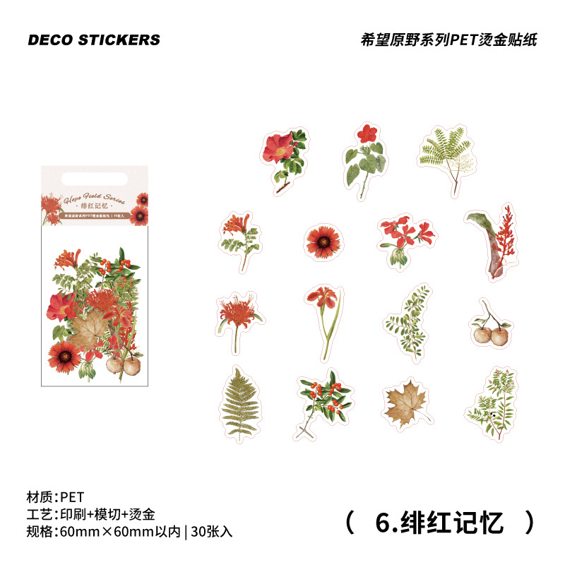 PET烫金贴纸包 希望原野系列 清新植物花卉手帐装饰贴画
