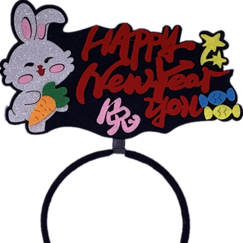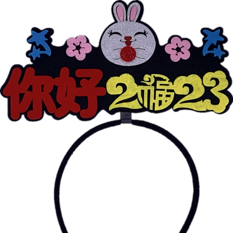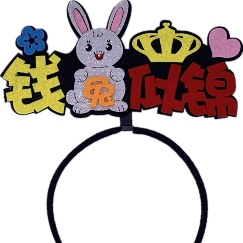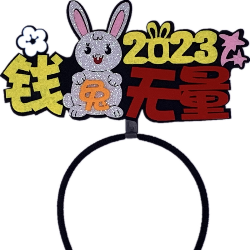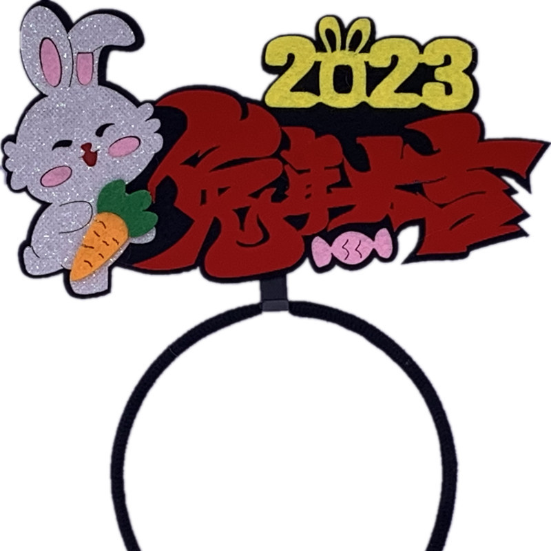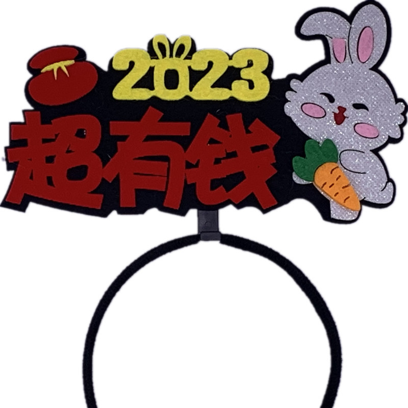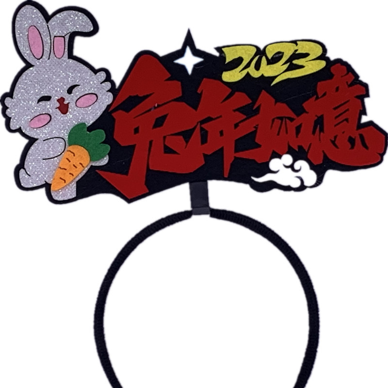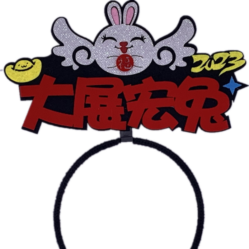 2023兔年新年头发箍头扣文字创意国潮发饰头饰品公司跨年晚会道具