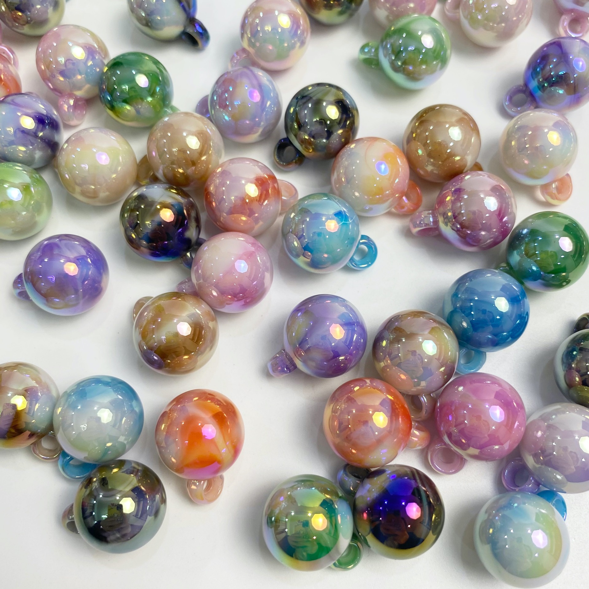 16mm吊孔圆珠电镀UV双色渐变云雾diy手机链串珠材料编织饰品配件