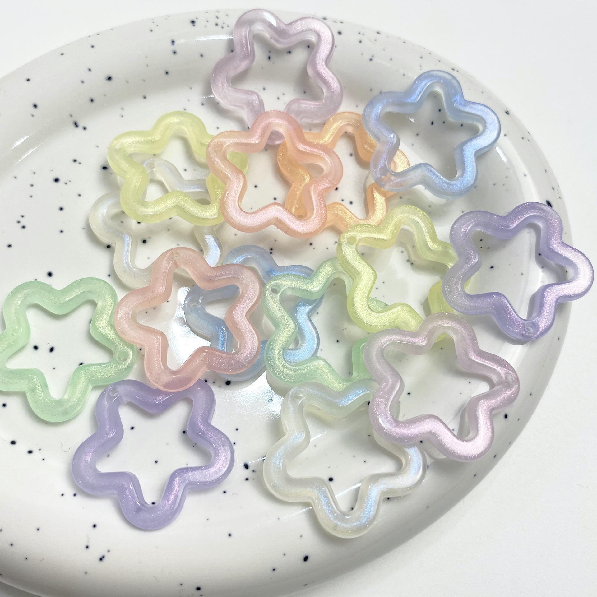 夜光细闪镂空五角星diy手工手机链串珠配件钥匙扣挂坠材料散珠彩
