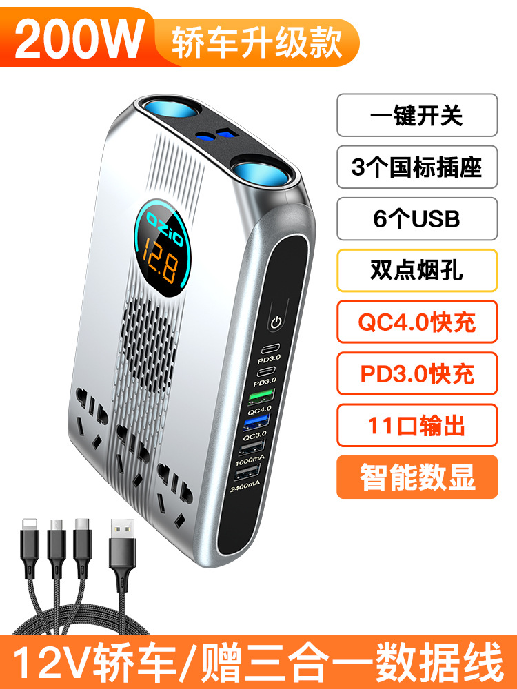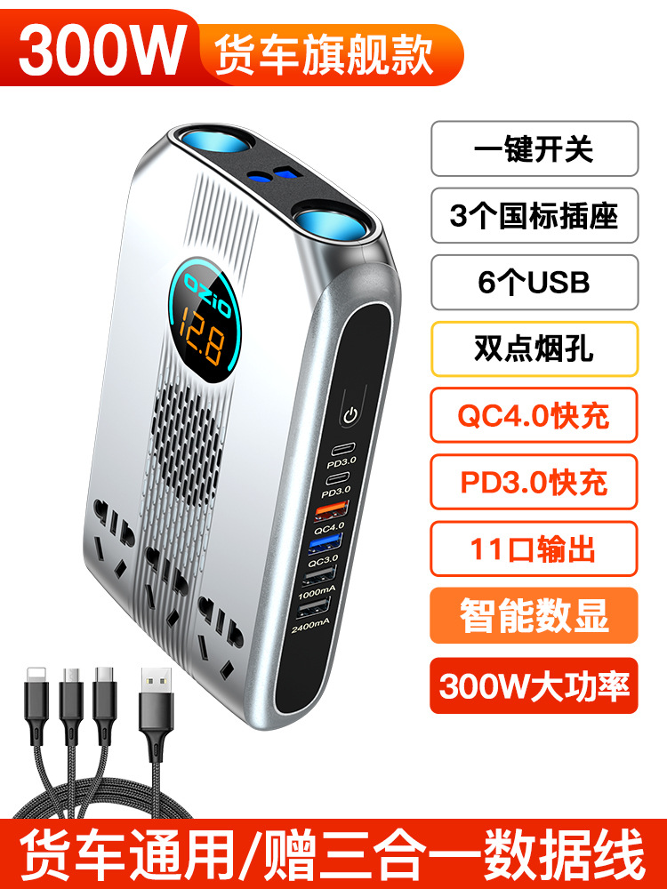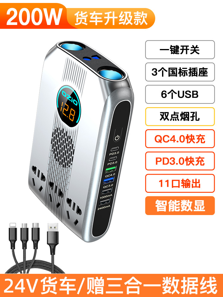 车载逆变器12v24v转220V转换器逆电变压器货车家通用电源充电插座