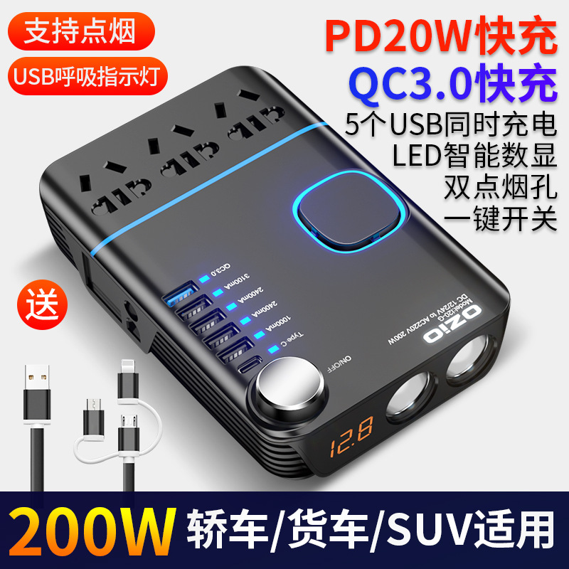 ozio奥舒尔车载充电器逆变器12/24转220小车货车专用