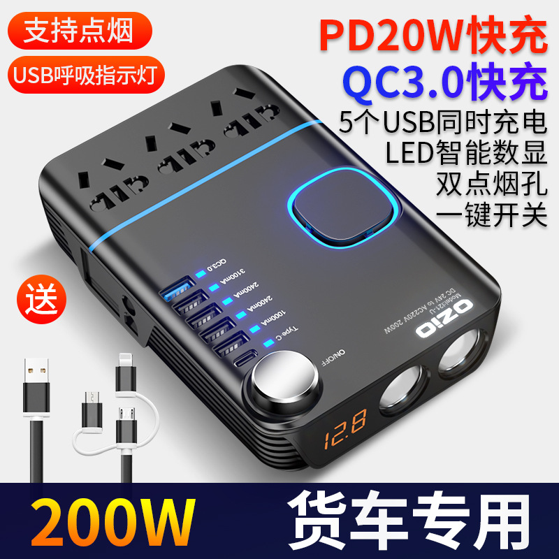 车载逆变器12V/24V转220V家用电源转换器多功能汽车插座充电器 PD
