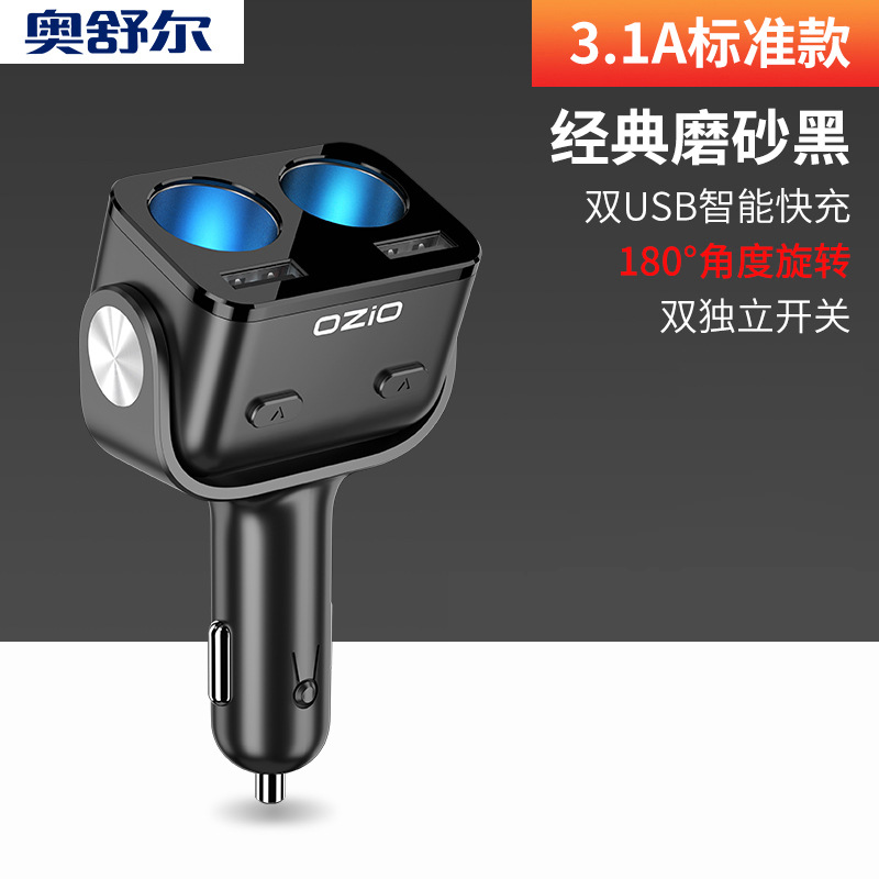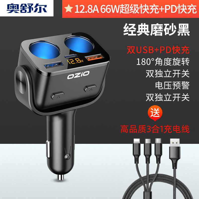 车载充电器闪充转换插头一拖二拖三点烟器usb接口多功能汽车快充