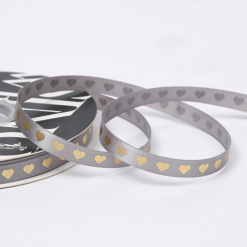 1cm心形印字缎 鲜花包装丝带蛋糕礼品蝴蝶结包装绑带绸带织带花店