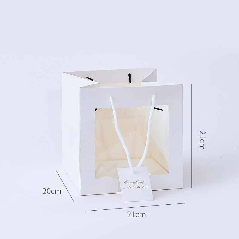 小ins开窗袋礼物花束包装袋鲜花纸袋伴手礼袋透明礼品手提
