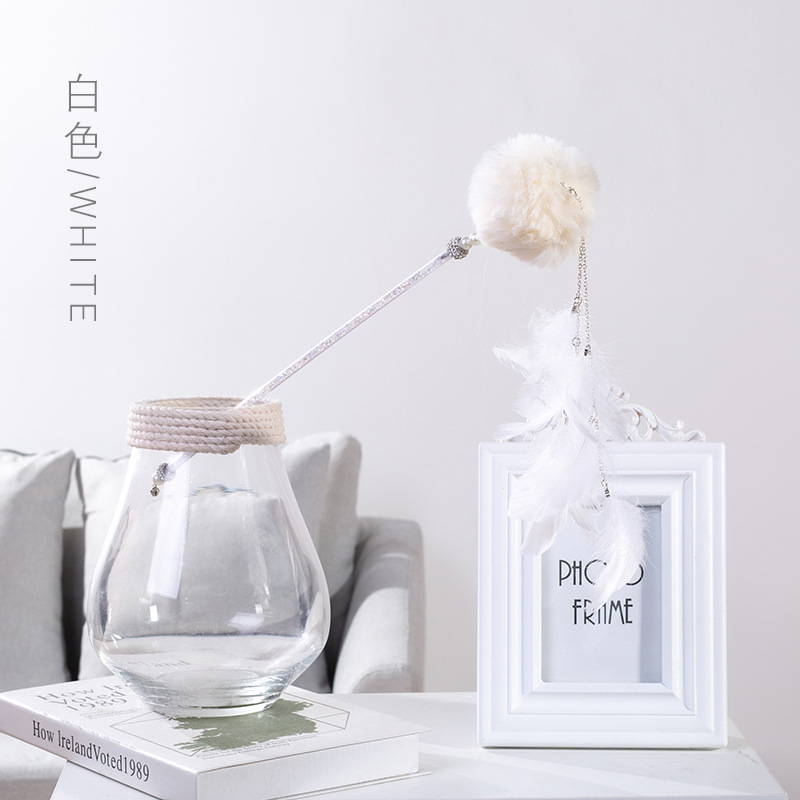 新款手工毛绒球铃铛仙女逗猫棒 可拆卸一款两用逗猫神器一件代发