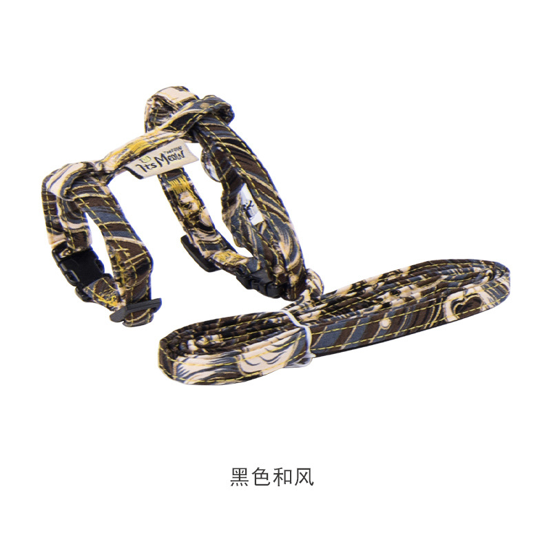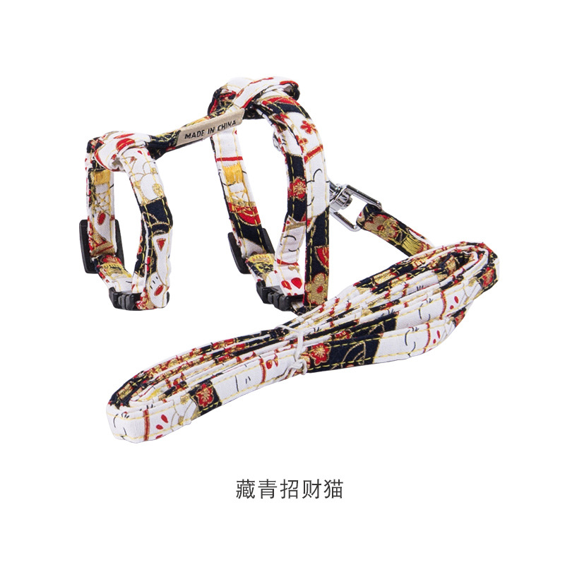 猫猫用品和风印花猫咪牵引绳 可调节工字遛猫绳 厂家现货一件代发