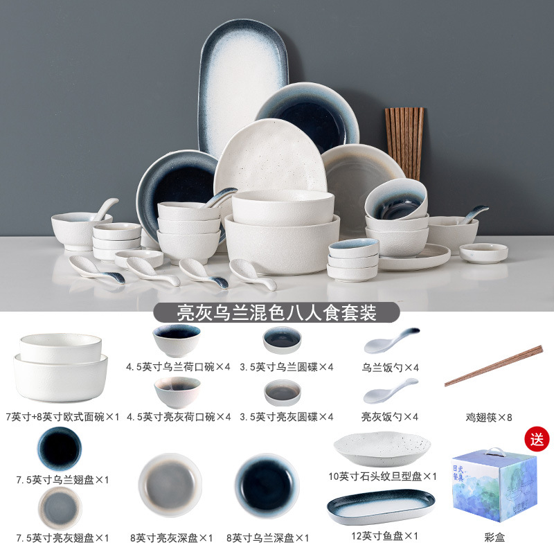 日式碗盘套装礼盒家用轻奢现代复古好看陶瓷碗碟套装送礼乔迁餐具