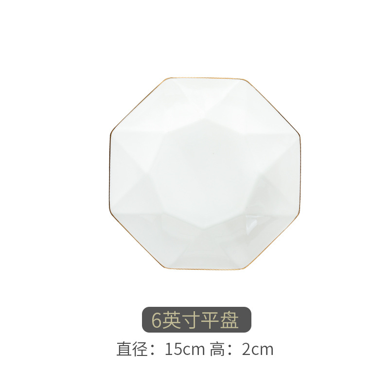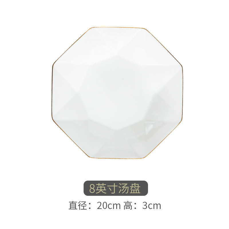 景德镇陶瓷餐具套装金边碗盘碟骨瓷餐具八角描金套装家用礼品瓷