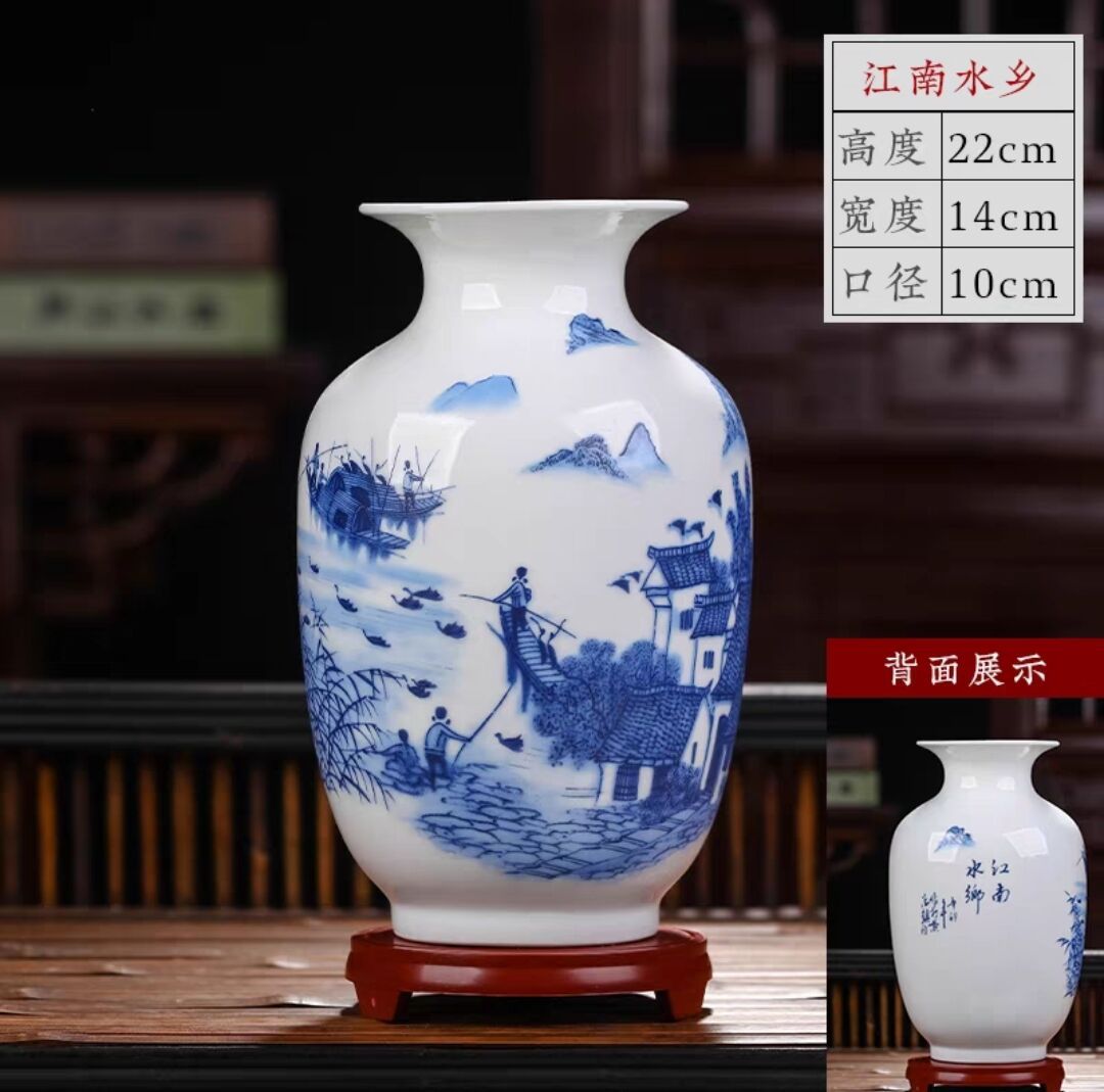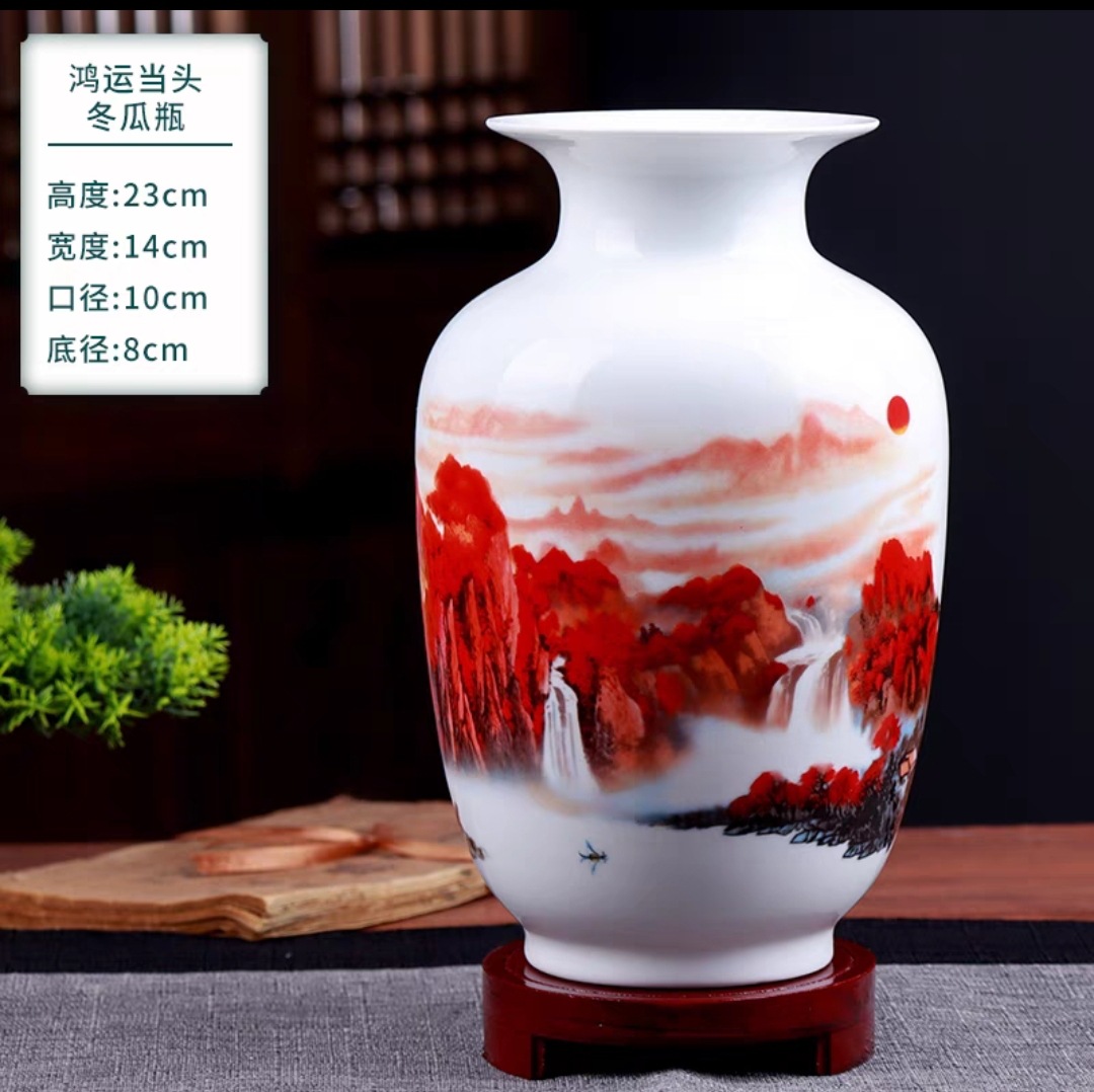 景德镇陶瓷 花瓶摆件客厅插花薄胎雪景小花瓶现代简约摆件花瓶