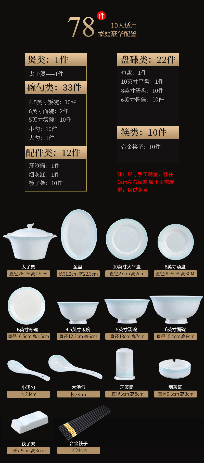 碗碟套装 家用景德镇釉中彩骨瓷餐具套装 陶瓷饭碗实用碗