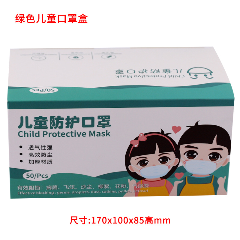 绿色儿童款口罩盒x空盒子170x100x80mm