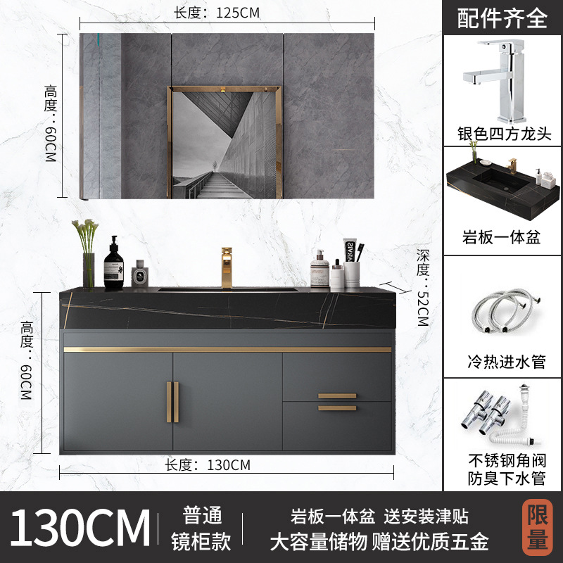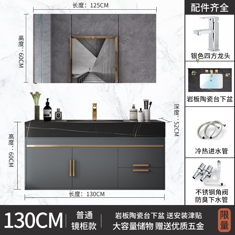 【130cm】岩板陶瓷台下盆+普通镜柜