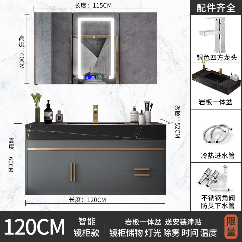 【120cm】岩板陶瓷台下盆+智能镜柜