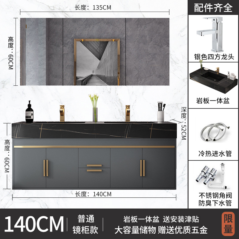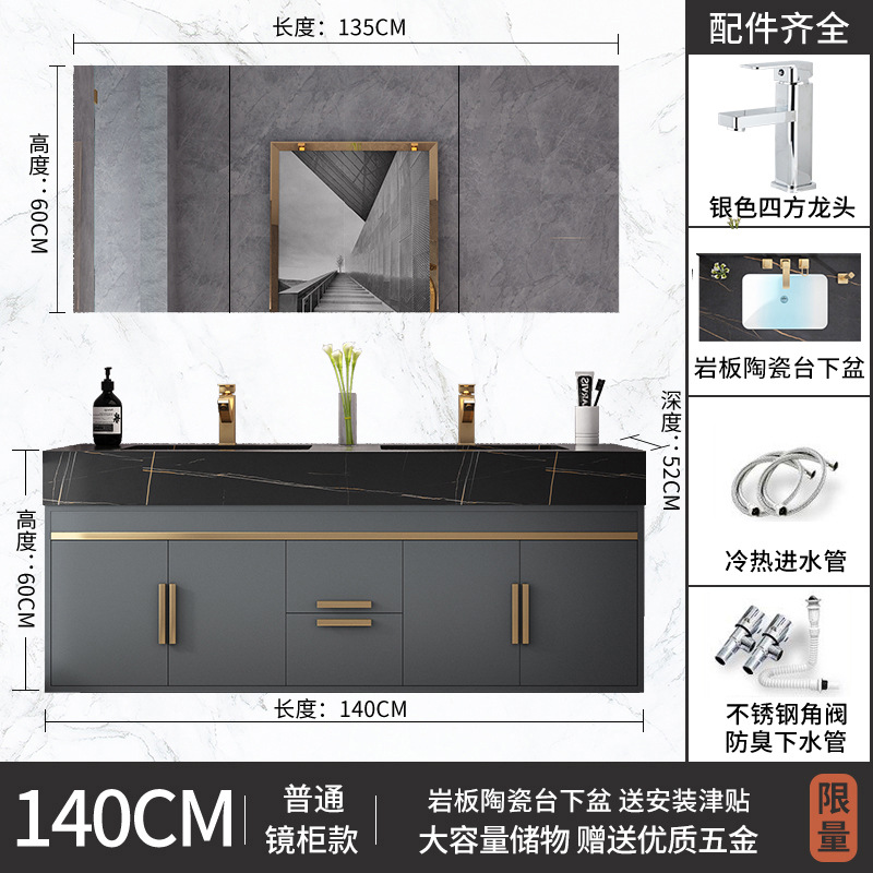 【140cm】岩板陶瓷台下盆+普通镜柜