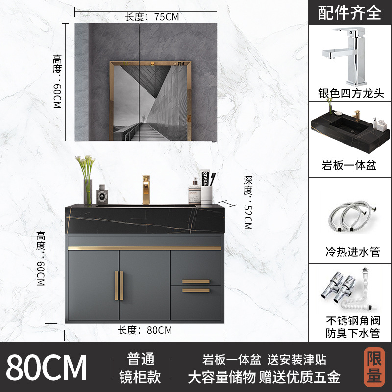 【80cm】岩板陶瓷台下盆+普通镜柜