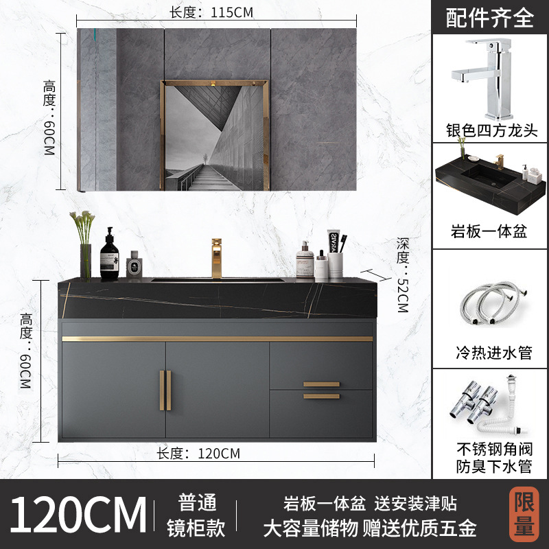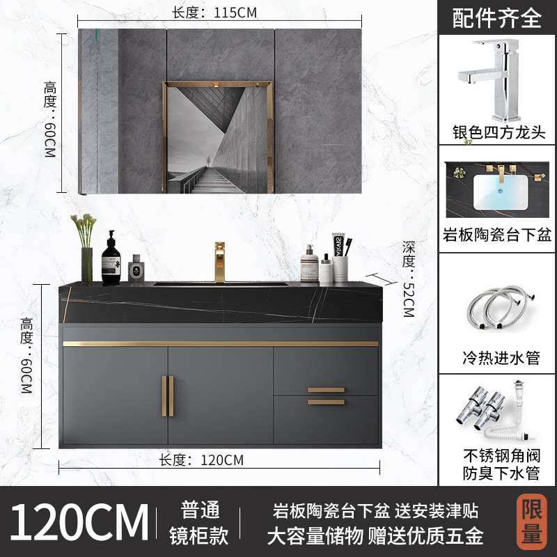 【120cm】岩板陶瓷台下盆+普通镜柜