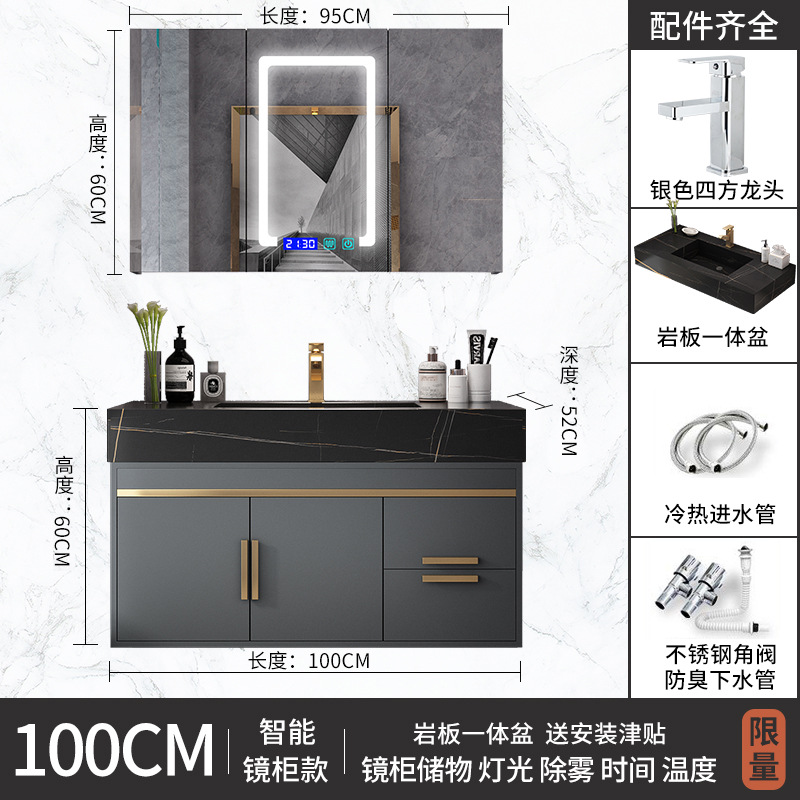 【100cm】岩板陶瓷台下盆+智能镜柜