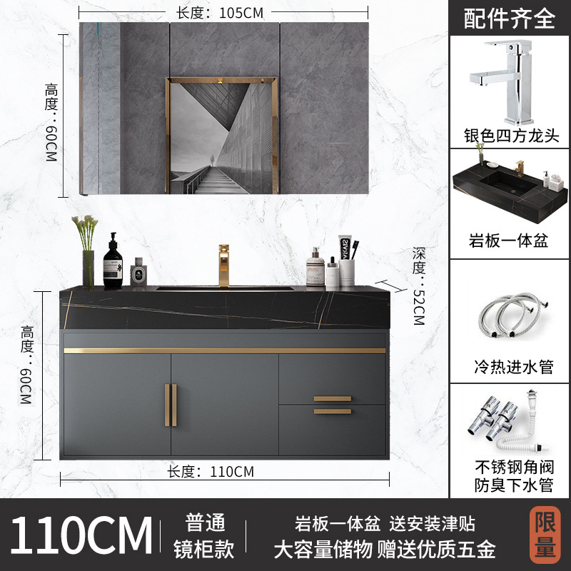 【110cm】岩板陶瓷台下盆+普通镜柜